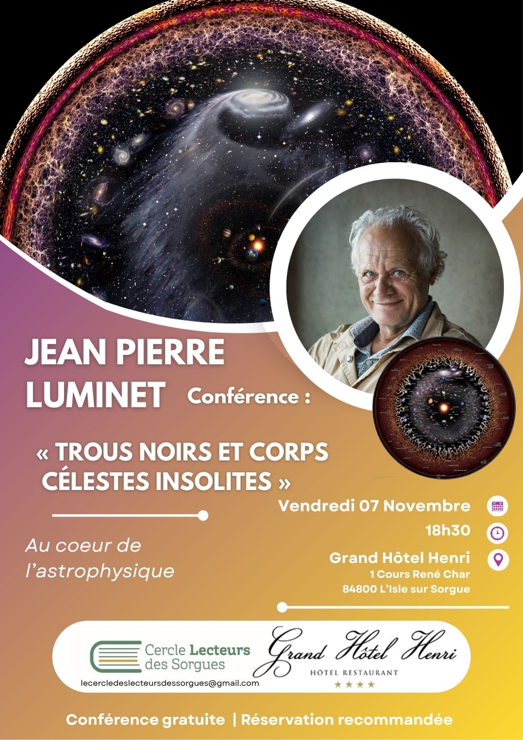 Le Cercle des Lecteurs des Sorgues vous invite à une rencontre passionnante avec Jean-Pierre Luminet, astrophysicien et écrivain, autour des mystères de l’univers et de la pensée scientifique. 📅 Vendredi […]
