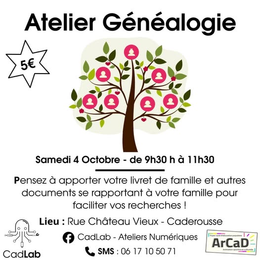 Vous vous êtes déjà demandé qui étaient vraiment vos ancêtres ? Quels secrets, quelles histoires, quels métiers se cachent derrière votre nom de famille ? Rejoignez l' atelier de généalogie le 4 octobre de 9 h 30 à 11 h 30 à Caderousse ! Au programme : - Apprendre à retrouver les documents utiles pour […]