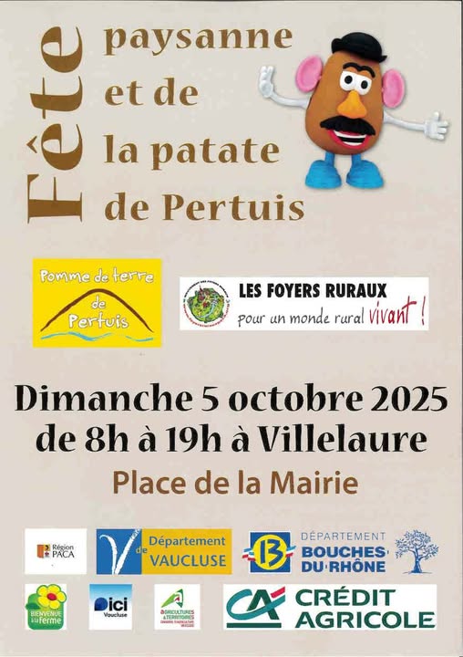 Foyer Rural de Villelaure : Fête Paysanne & de la Patate de Pertuis Villelaure – Dimanche 5 octobre - Une journée 100% terroir, traditions et convivialité ! AU PROGRAMME : 8h – Pêche à la truite 9h30 – Bénédiction des animaux & inauguration 10h – Grand défilé : tracteurs, chevaux, moutons, véhicules anciens, Marguerite la […]