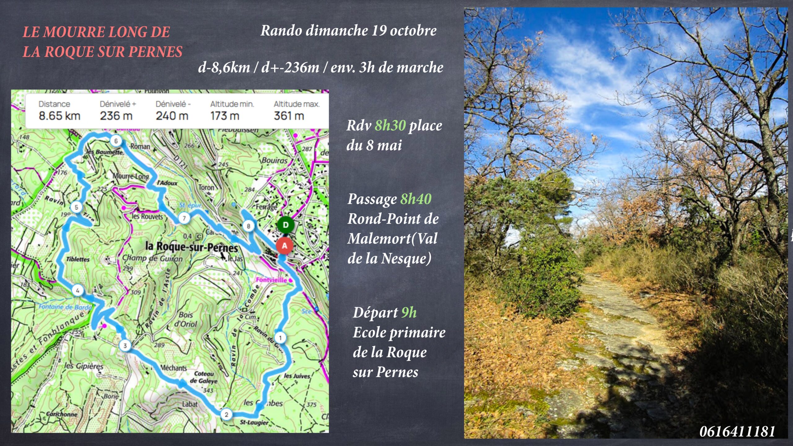 Retrouvez les marcheurs du foyer rural de Villes sur Auzon ce dimanche 19 octobre 2025 et profitez d'une balade à La Roque sur Pernes
