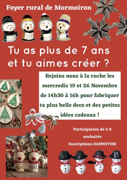 Plus d’infos sur l’atelier du 17 décembre prochainement mais en attendant rdv le 26 pour les petites mains ( à partir de 8 ans )