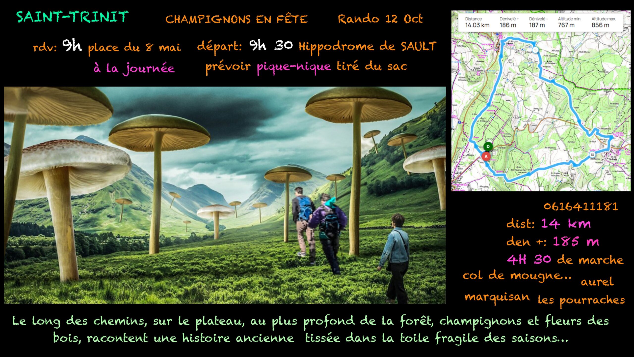 Retrouvez les marcheurs du foyer rural de Villes sur Auzon ce dimanche 12 octobre 2025 et profitez d’une balade à Saint Trinit